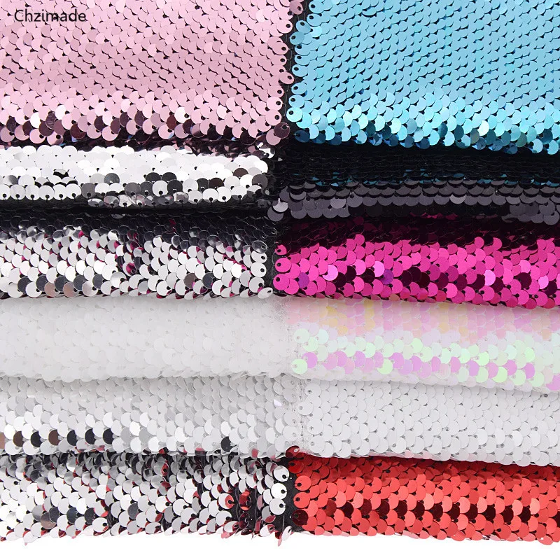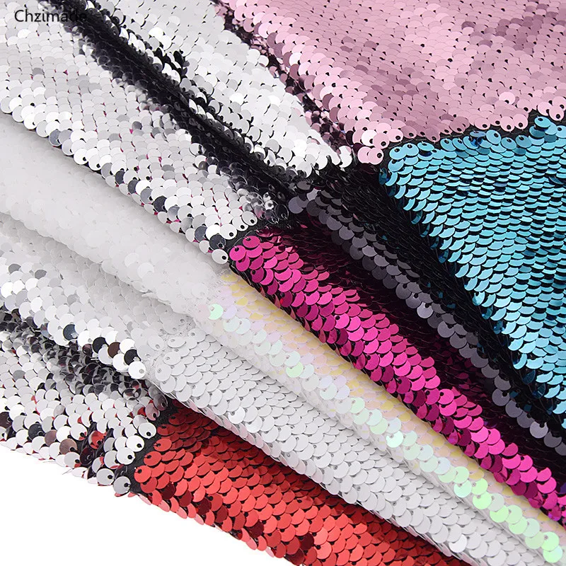 Chzimade 29cmx21cm A4 Rainbow Reversible Sequin Fabric High Quality Shiny Fabric DIY Sewing Supplies